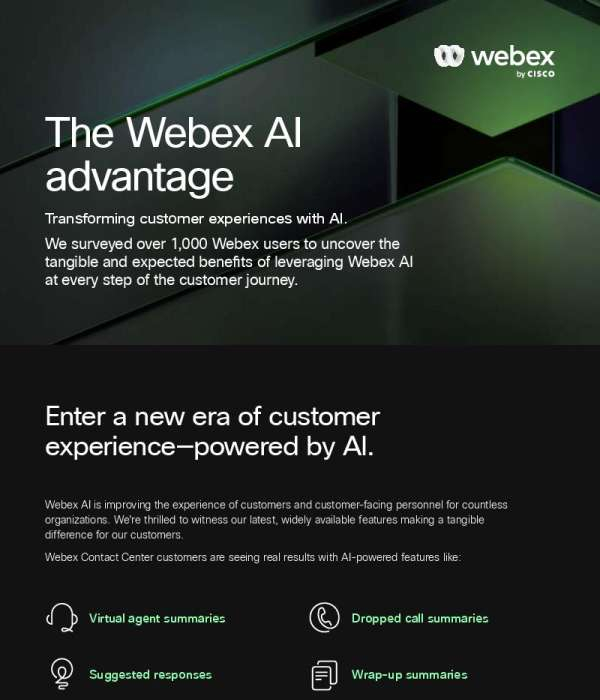 Dive into the game-changing capabilities of Webex AI in this informative infographic. The document provides significant insights into how the power of AI leads to tangible benefits and dramatically improves the customer journey. With impact demonstrated across varied areas such as accurate replies, customer routing, agent efficiency and improved customer satisfaction, it becomes clear that Webex AI is the key to resolving your critical customer experience challenges. The early findings suggest a potential increase in Net Promoter Scores, reduced customer churn, and an improved quality of customer-agent interactions. Check out the document and contact us today to get started with the newest AI-enabled Webex customer service solution.